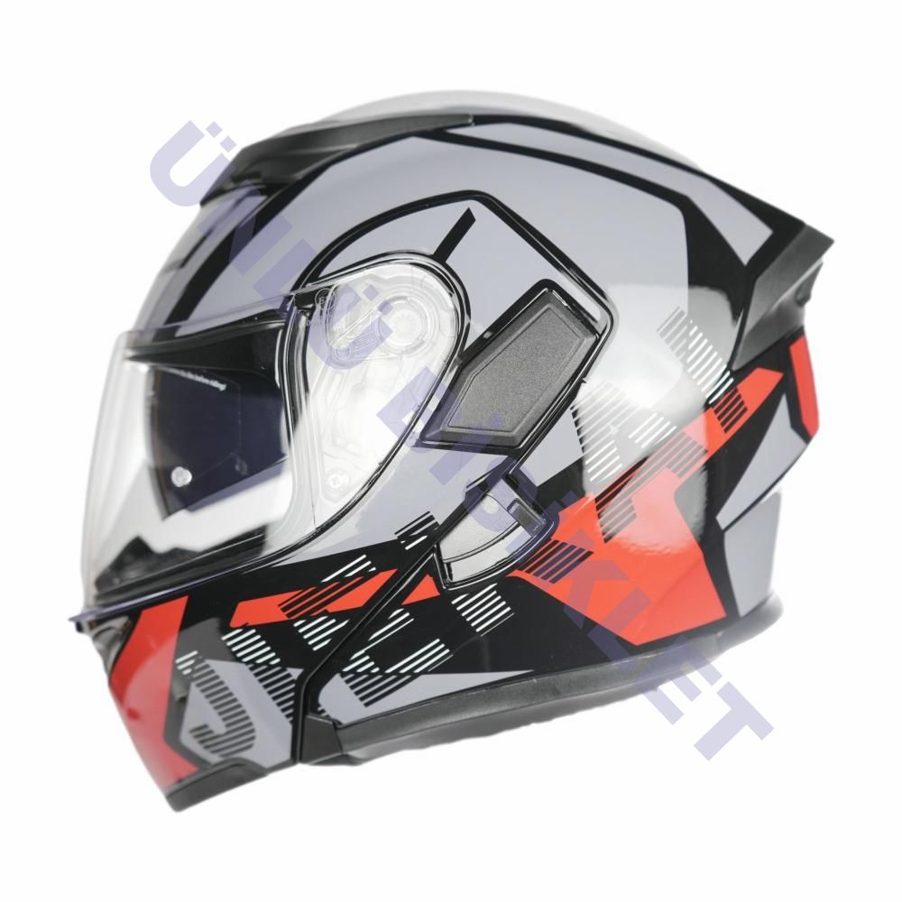 KC - ÇENE AÇILIR VİZÖRLÜ KASK [KC902] [SİYAH-KIRMIZI-GRİ] [L]