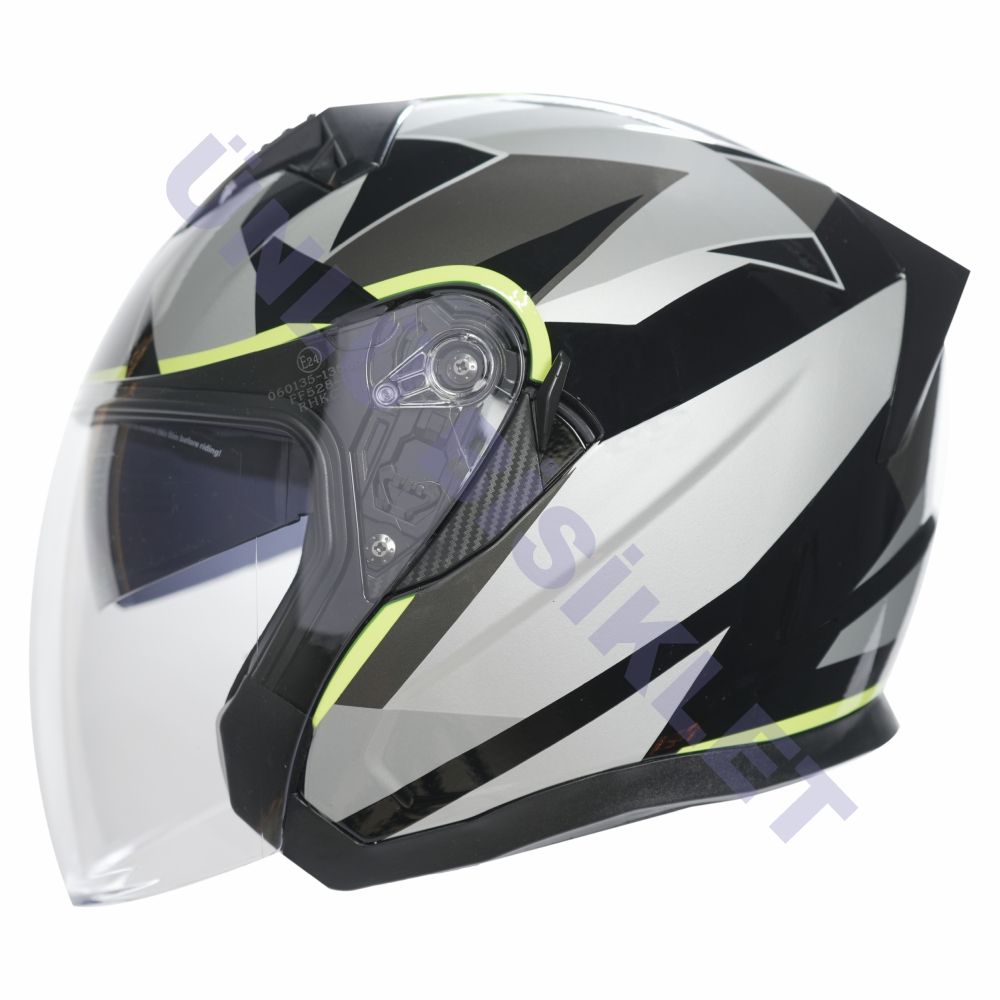 KC-ÇENESİZ VİZÖRLÜ YAZLIK KASK [KC528-1] SİYAH - GRİ - NEON SARI [S] E BELGELİ